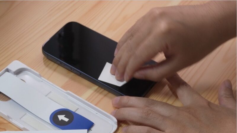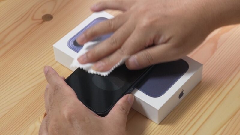 まずは付属のクリーニングクロスで汚れを拭き取り、その後、ホコリ取りシールで細かなゴミやホコリを取り除きます。