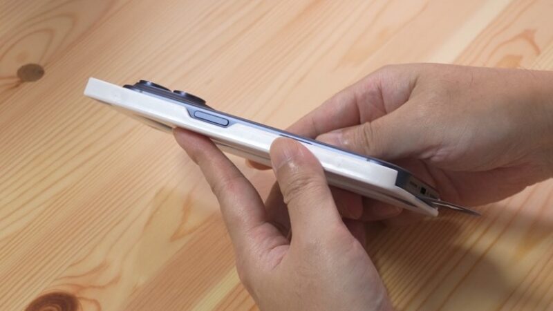 正しくセットできれば、下の画像のようにiPhoneの側面もしっかり一致します。