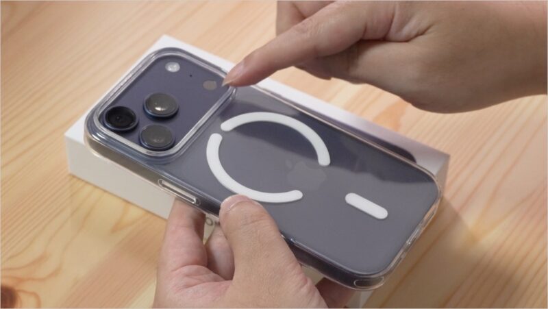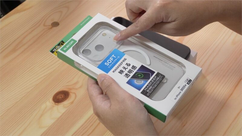 フィルムの貼り付けが苦手な人でも失敗しにくい“貼り付けツール付き”のガラスフィルムと、MagSafe対応の透明クリアケースの2つです。