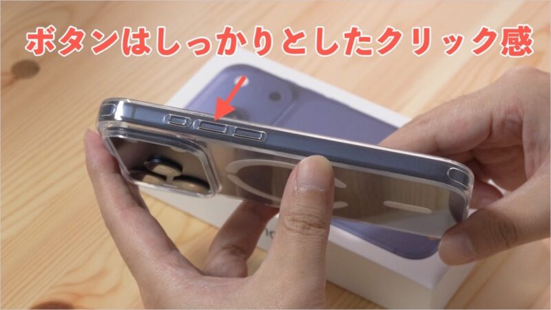 透明度が高く、本体カラーをそのまま楽しめます。側面はフラットな形状で、グリップ時に安定感があります。