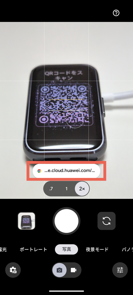 2. Google Pixelの純正カメラアプリを起動し、表示されたQRコードを読み取ります。