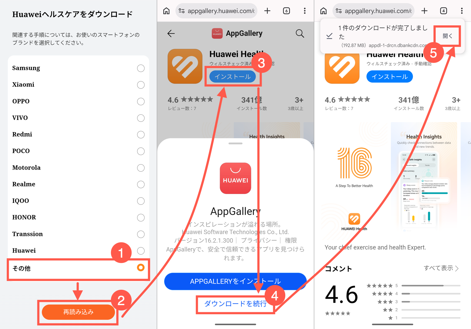 2. 画面下の「再読み込み」をタップすると、HUAWEIヘルスケアのインストール画面が表示されます。