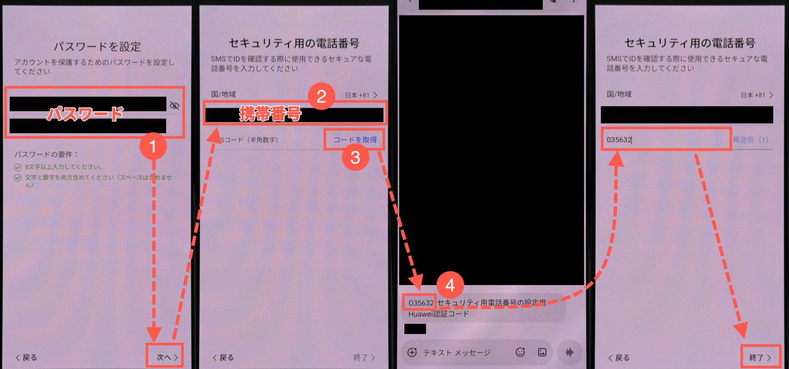 パスワードとセキュリティ用電話番号を設定する