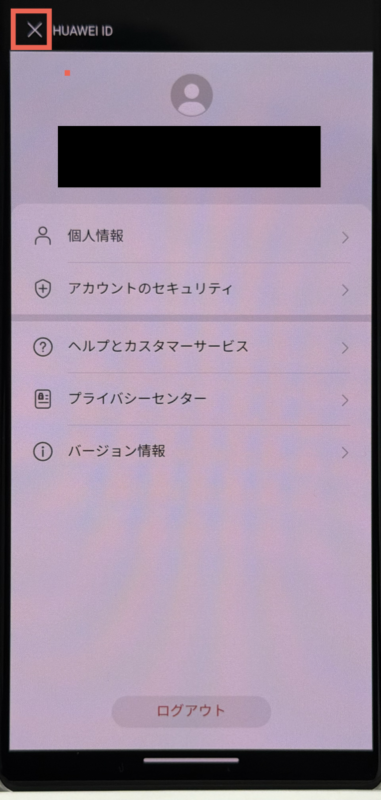 2. 画面上の人のアイコン(「HUAWEIIDでログイン」)をタップします。