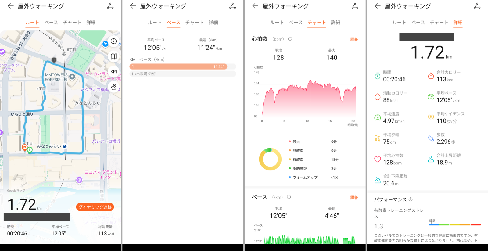 さらに重要なのが、ルートを記録するにはHUAWEIヘルスケアアプリ側からワークアウトを開始する必要があるという点です。バンド本体からワークアウトを開始した場合、スマホを持っていてもルートは記録されませんでした。