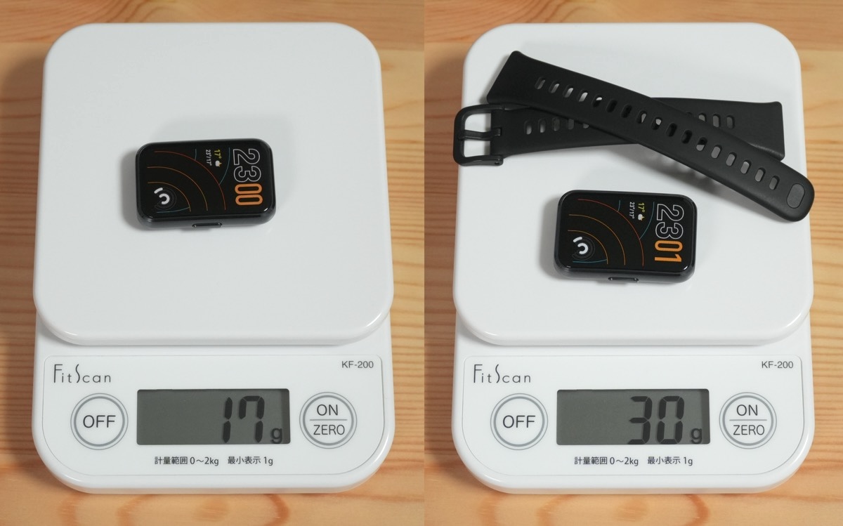 バンドの重量は約30gと軽量で、就寝時に着けたまま寝ても気にならないレベルです。