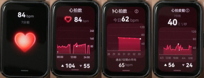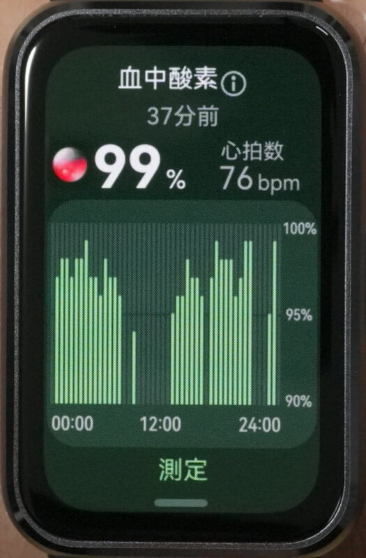 心拍数や血中酸素レベルは24時間モニタリングに対応しています。あらかじめ基準値を設定しておくと、範囲から外れた場合にアラートで知らせてくれます。